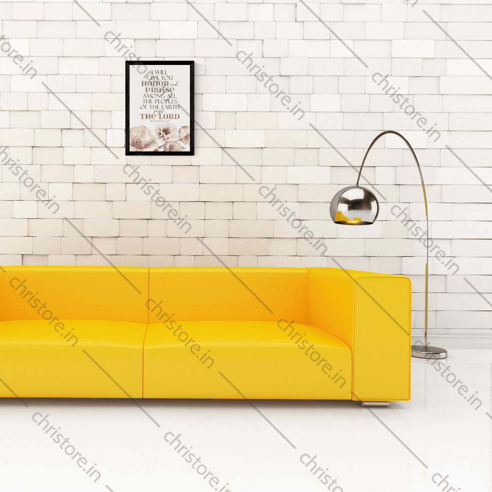 A word of Faith, that the Lord as per his word will lift your heads higher and keep you in a place where you will be honored and praised by others because of Christ in you. This artwork reminds us of the promise God has given to us. An elegantly designed wall décor perfect for the living room or any part of the house or work place. An ideal gift for any occasion. Scripture taken from Zephaniah 3:20 "I will give you honor and praise among all the peoples of the earth". Material: Plastic - Synthetic Wood Finish. Frame Size: 1 inch Packaging: Corrugated Box Available Frame Colors: Black, White, Brown Size: 20x14x0.5 (l*w*h)